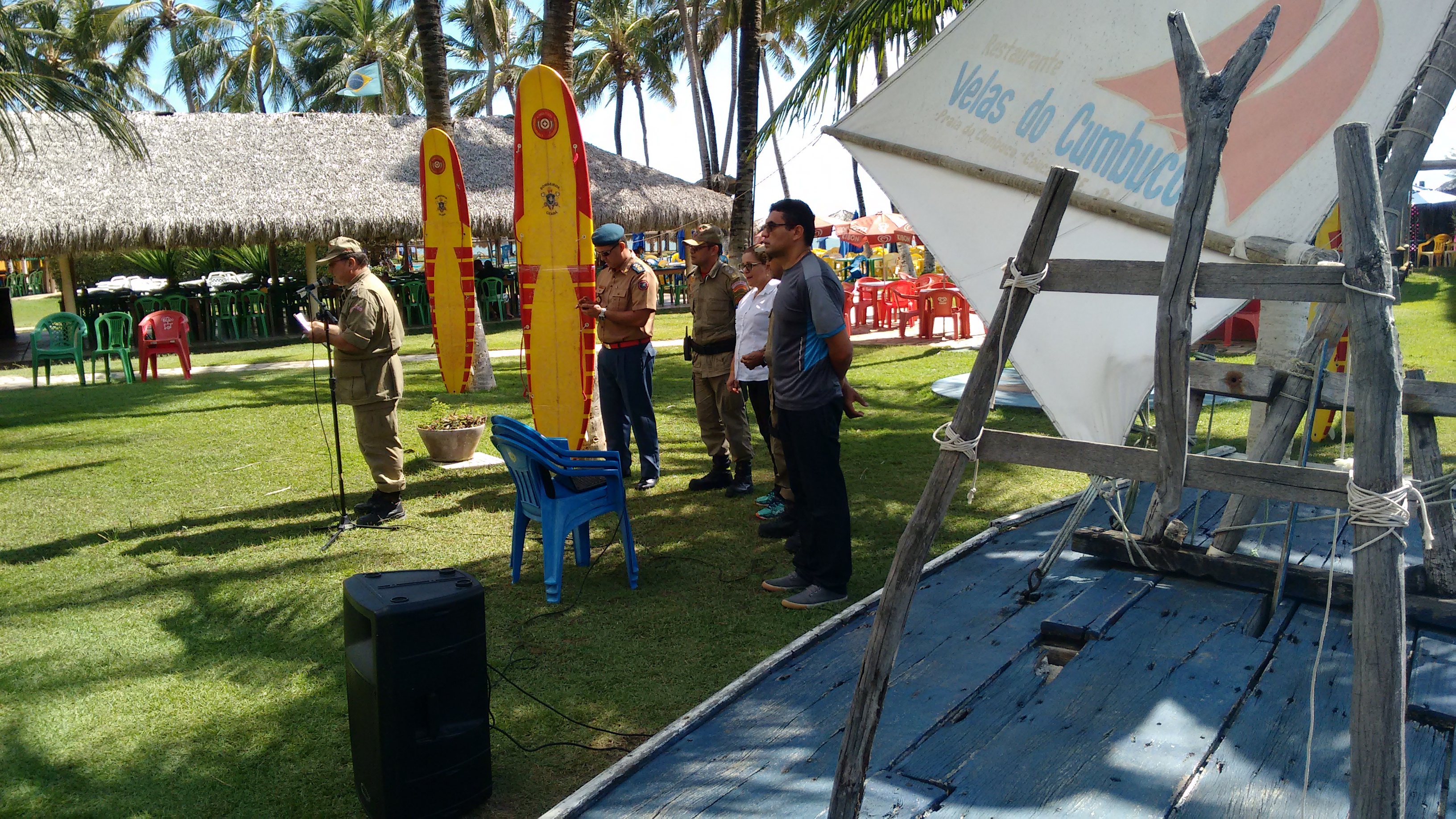 Em cerimônia, organizada pelo comando da 2ª SSMAR, Maj Cláudio, e presidida pelo Comandante do 2º Grupamento de Bombeiros em exercício, Ten Cel Oliveira, os bombeiros militares que trabalham no quartel sediado no Icaraí que atuam no combate a incêndio, salvamento terrestre e aquático, foram apresentados à disposição da operacão.
