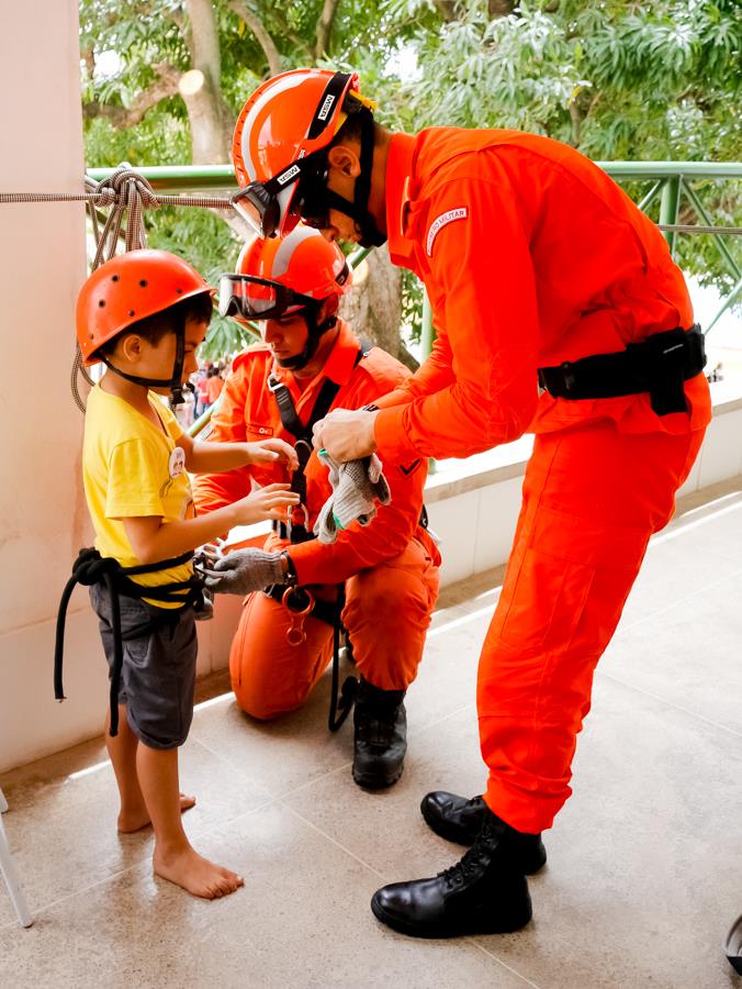 Neste sábado (22), o Núcleo de Busca e Salvamento (NBS) deu apoio a Academia Estadual de Segurança Pública do Ceará (AESP) para abrir as portas para um grupo de 400 crianças moradoras das comunidades Titanic, Recanto dos Pardais e Conjunto Vitória, todas localizadas no entorno da referida unidade de ensino. A iniciativa faz parte das comemorações do dia das crianças e busca promover a integração das comunidades com a Instituição. Durante a ação, os pequenos participaram de atividades recreativas, dentre essas puderam conhecer as viaturas do Corpo de Bombeiros e realizar rapel com toda a segurança e supervisão do Corpo de Bombeiros Militar do Ceará.