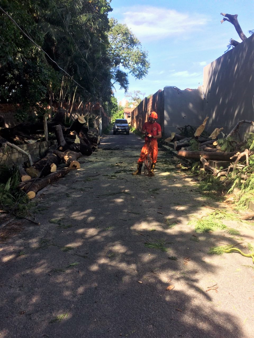 “O papel do Corpo de Bombeiros, em casos assim, é eliminar os riscos imediatos à população e ao patrimônio. Cabe à Prefeitura dar destino aos pedaços caídos da árvore. Caso a árvore não tenha caído, mas esteja em perigo de queda iminente, devidamente comprovado, nós podemos atuar prevenindo uma queda potencialmente perigosa. Mas é muito importante solicitar à Prefeitura regularmente a poda preventiva de árvores suspeitas, pelo número 156. Agora, caso ocorra o sinistro, trazendo riscos secundários para a sociedade ou para os bens, deve-se acionar os Bombeiros, no número 193″, explica o tenente Eliomar.