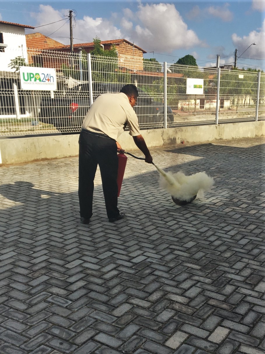 “Demos ênfase à importância da prevenção de incêndios e à necessidade de manter os extintores sempre carregados, com a manutenção em dia e com a equipe treinada e apta para a utilização do equipamento diante de um eventual princípio de incêndio”, explica o primeiro-tenente José Aírton Miranda Forte Filho, responsável pela instrução. Além dos aspectos teóricos, houve abordagem prática com os funcionários do setor administrativo de cada UPA. Nesse momento, porteiros, seguranças e agentes da área da saúde puderam utilizar o extintor. “Procuramos garantir um mínimo de familiaridade dos possíveis operadores com o material de combate a incêndio, com o seu peso, com o manuseio prático e com a forma correta de se aproximar do fogo”, destaca o instrutor.