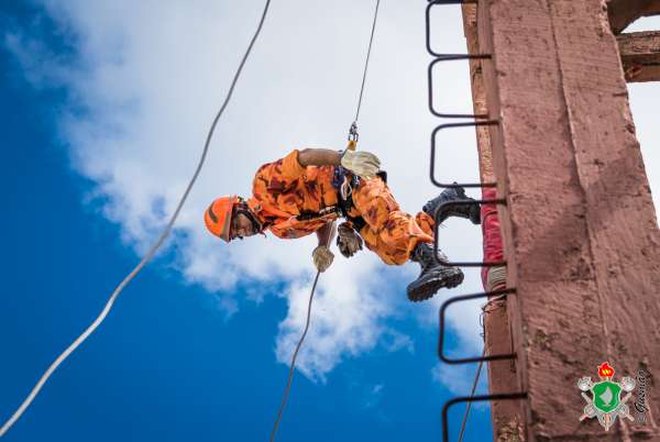 Na ocasião, bombeiros da 1ª Seção de Busca e Salvamento fizeram uma demonstração que envolveu várias técnicas de resgate em altura utilizadas pela Corporação.
