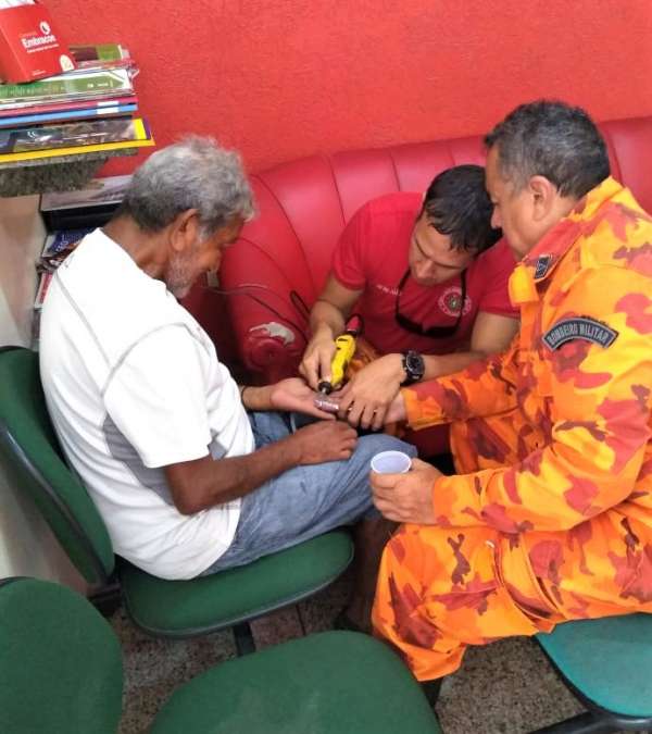 Uma guarnição de salvamento de serviço na 1ª Companhia do Batalhão de Busca e Salvamento (1ªCia / BBS) atendeu nesta terça-feira (09) uma solicitação da CIOPS para apoio na remoção de um anel preso no dedo anelar esquerdo de um senhor de 58 anos.