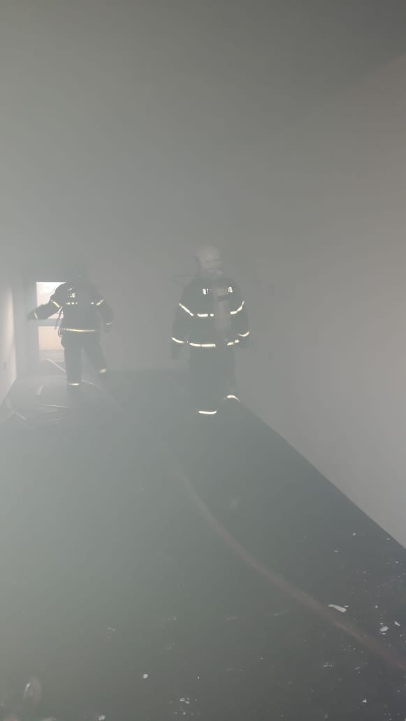 Foi usado o hidrante de recalque no passeio do edifício e a reserva técnica de incêndio (RTI) mais a água do 1º Socorro (5 mil litros de água), sendo utilizado os seguintes materiais: 01 mangueira de 2 1/2; 02 mangueiras de 1 1/2; 01 adaptador; 01 alavanca; 01 esguicho de 1 1/2 e 04 máscaras autônomas.(EPRA).