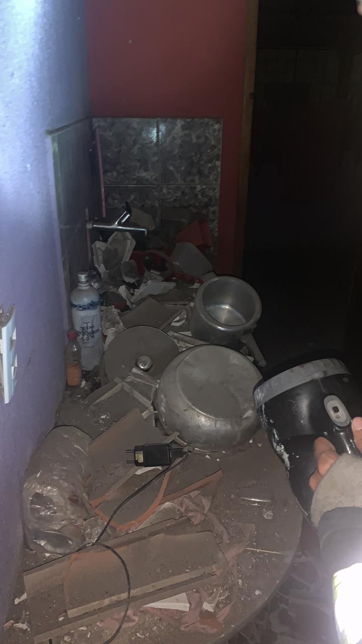 A deflagração do ambiente foi forte o suficiente para derrubar todo o forro de gesso, deslocar as telhas de seus lugares, dos ambientes da sala, quarto e cozinha, assim como danificar um liquidificador, um ventilador, um fogão, uma geladeira e um guarda roupas e uma porta veio a cair, em suma, consequências da explosão ambiental em decorrência do vazamento do gás de cozinha.