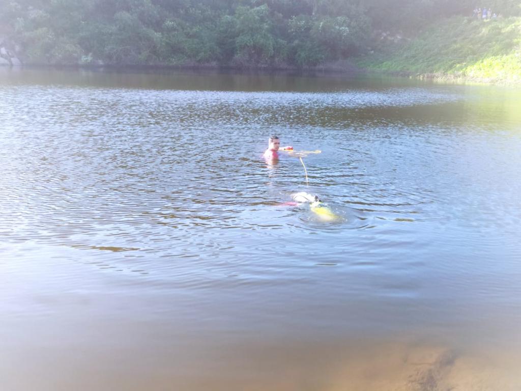 Em síntese, Mergulhadores do Corpo de Bombeiros resgatam vítima de afogamento, em Pereiro. Atuaram na ocorrência, o Soldado Nairo, o Soldado Viana e o Soldado Helton.