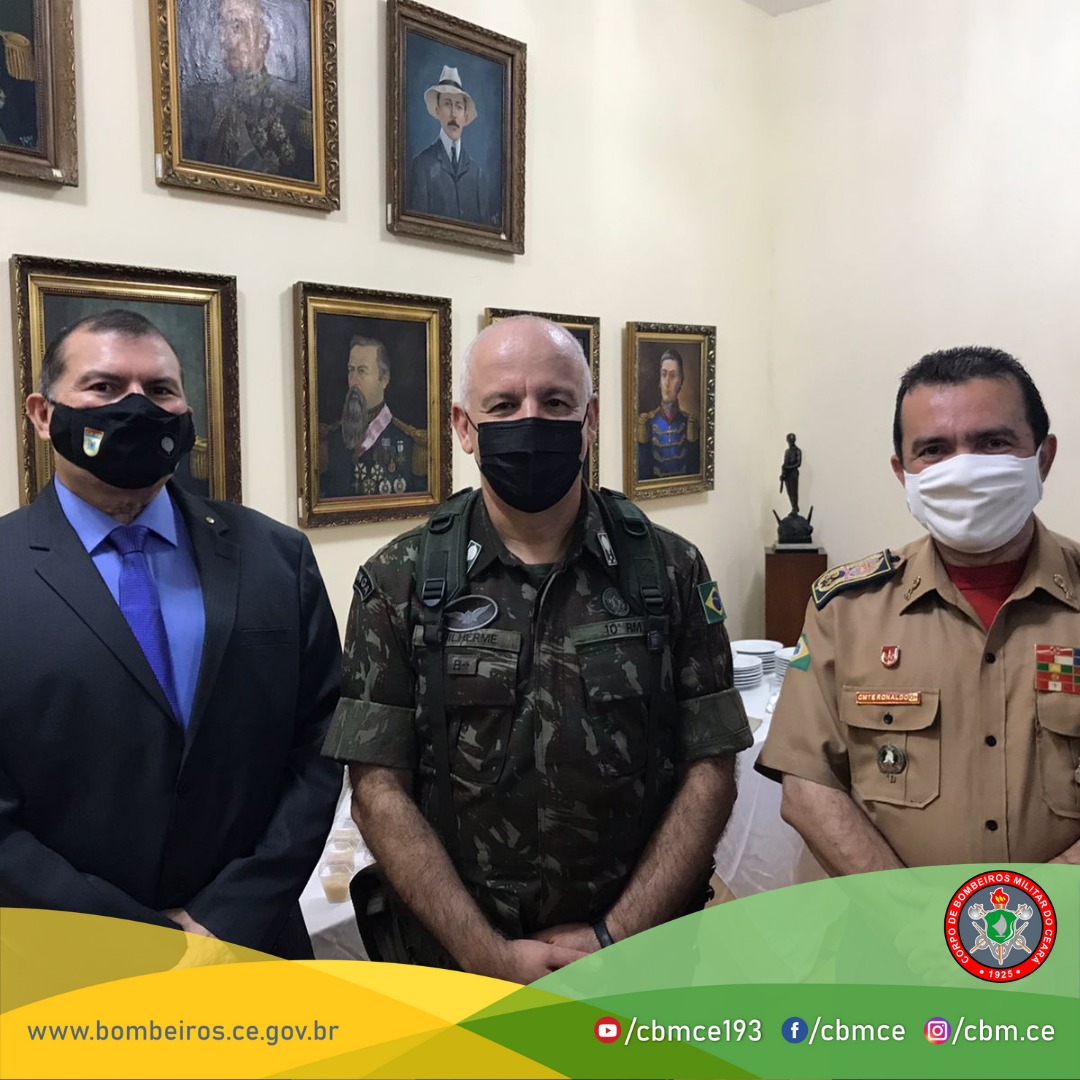 Corpo de Bombeiros participa da mudança de Comando da 10ª Região Militar. O comandante-geral do Corpo de Bombeiros Militar do Estado do Ceará (CBMCE), o coronel Ronaldo Roque de Araújo participou na noite desta segunda-feira (23), na 10ª Região Militar (10ªRM), Região Martim Soares Moreno, do General de Divisão Luciano Guilherme Cabral Pinheiro para o General de Divisão André Luiz Ribeiro Allão.