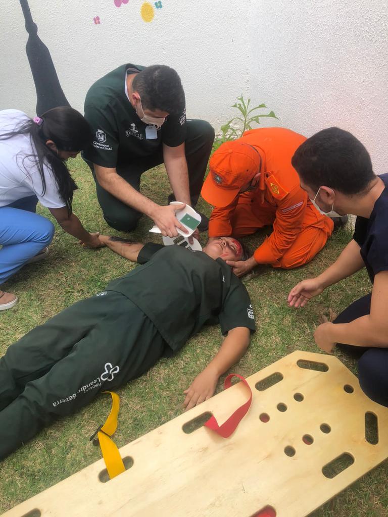 Foi realizado um simulado de atendimento a uma vítima pelos colaboradores da UPA de Sobral. Estiveram presentes o ST Saraiva e o ST Crispim.