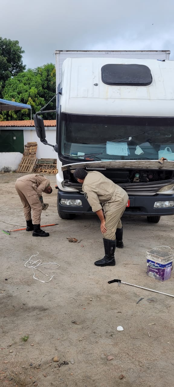 16 de maio de 2022 - 21:48 #6ªCia/3ºBBM - Quartel de Canindé #Corpo de Bombeiros resgata gato e cobra presos em veículos #Posto Avançado de Ipueiras