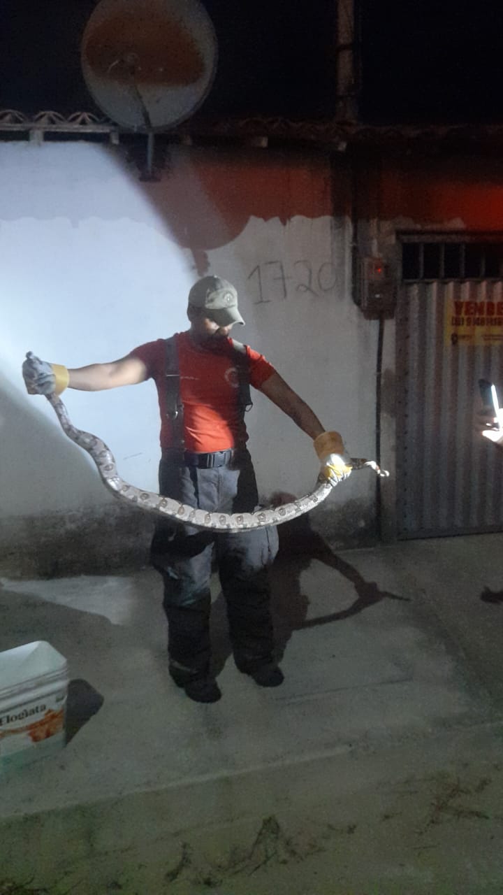 No início da madrugada de domingo, às 00h34, equipes foram chamadas à Rua Dom Luiza Távora, no bairro Jardim das Oliveiras, após moradores solicitarem a retirada de uma cobra que havia sido avistada no local. Ao chegarem, os bombeiros identificaram uma jiboia de aproximadamente dois metros, espécie comum na região, mas que pode causar risco caso se aproxime de residências.
