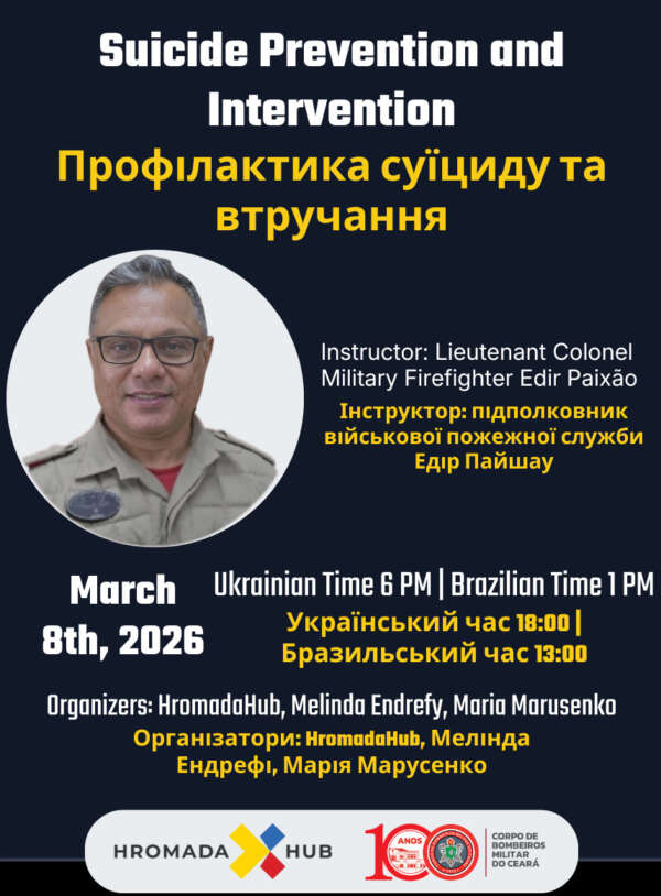 No dia, 08 de março de 2026, às 13h do Brasil e às 18h da Ucrânia, o CBMCE ministrou treinamento para mais de 40 psicólogas de emergência que atuam em ajuda humanitária na Ucrânia. O Tenente-Coronel Edir Paixão compartilhou os conhecimentos de sua corporação e sua experiência na área. Durante o encontro, foi discutido como construir uma conversa adequada com uma pessoa em crise: